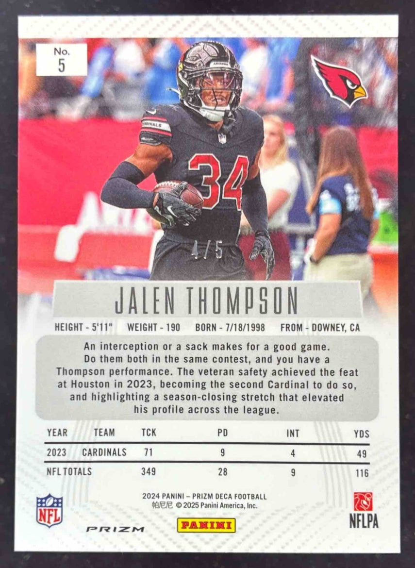 2024 Panini Prizm Deca Black Gold Prizm #5 Jalen Thompson /5