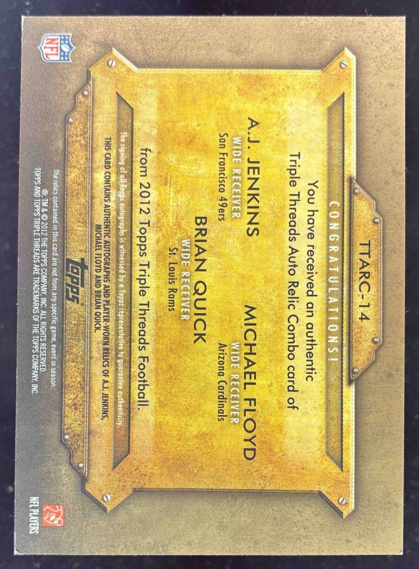2012 Topps Triple Threads Relic Gold Jenkins Brian Quick Michael Floyd Auto /9