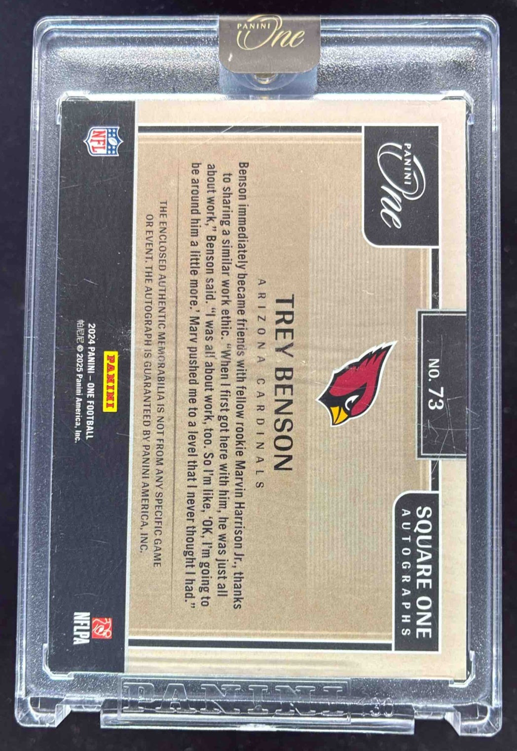 2024 Panini One Square One Autographs Platinum #73 Trey Benson RC Auto /5
