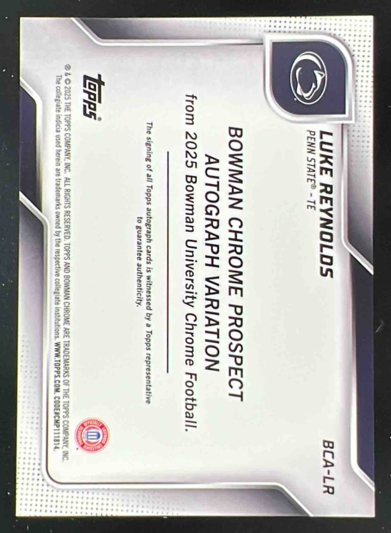 2025 Bowman Chrome University Autograph Blue Refractor Luke Reynolds Auto /150
