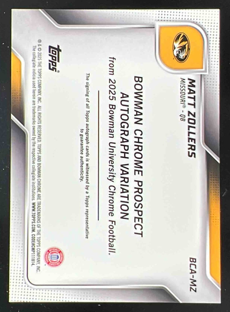2025 Bowman Chrome University Autograph #BCA-MZ Matt Zollers Auto