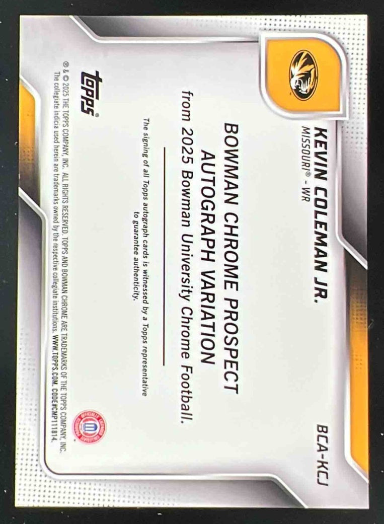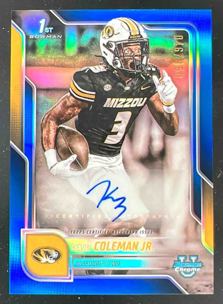 2025 Bowman Chrome University Blue Refractor #BCAKCJ Kevin Coleman Jr. Auto /150