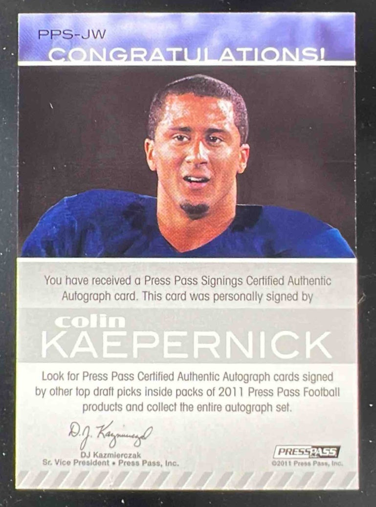 2011 Press Pass Autographs #PPS-JW Colin Kaepernick Autograph Auto