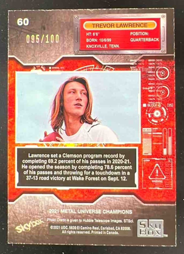 2021 Skybox Metal Universe Champions Precious Gems Orange Trevor Lawrence /100
