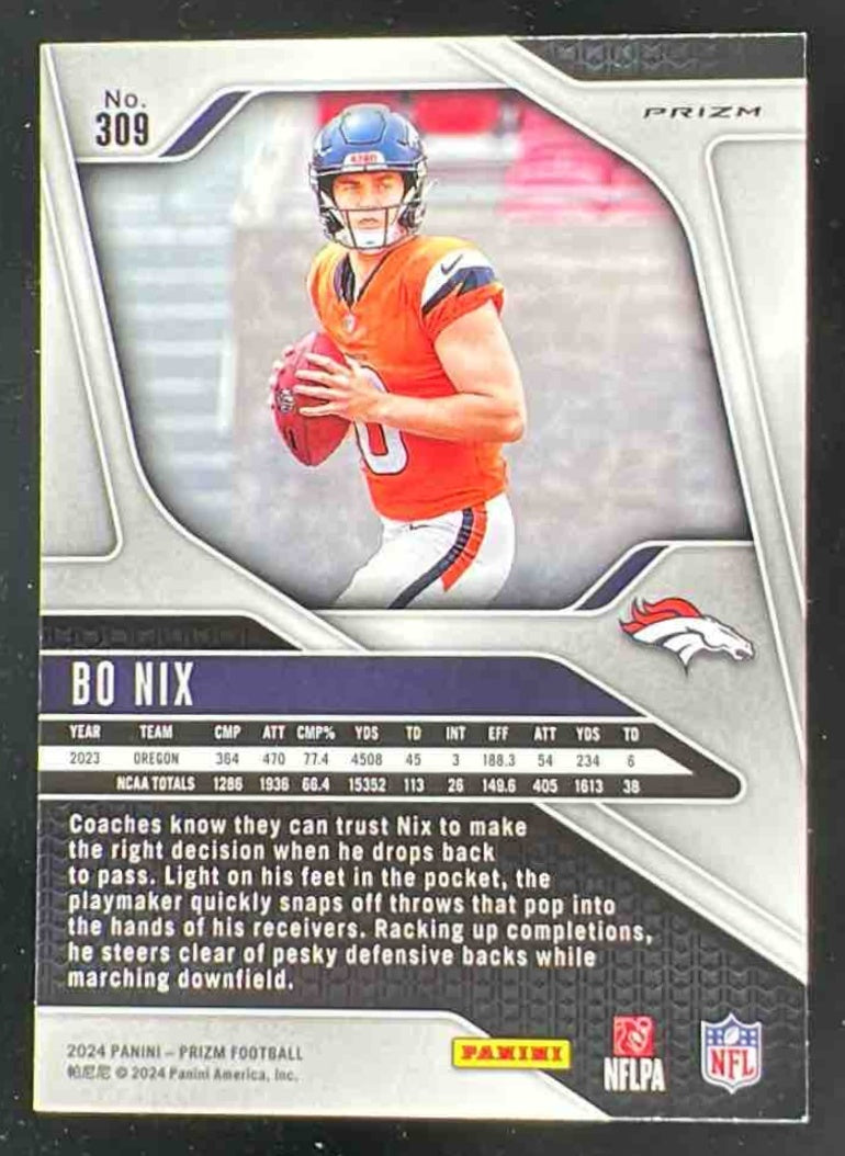 2024 Panini Prizm Green Wave Prizm #309 Bo Nix RC