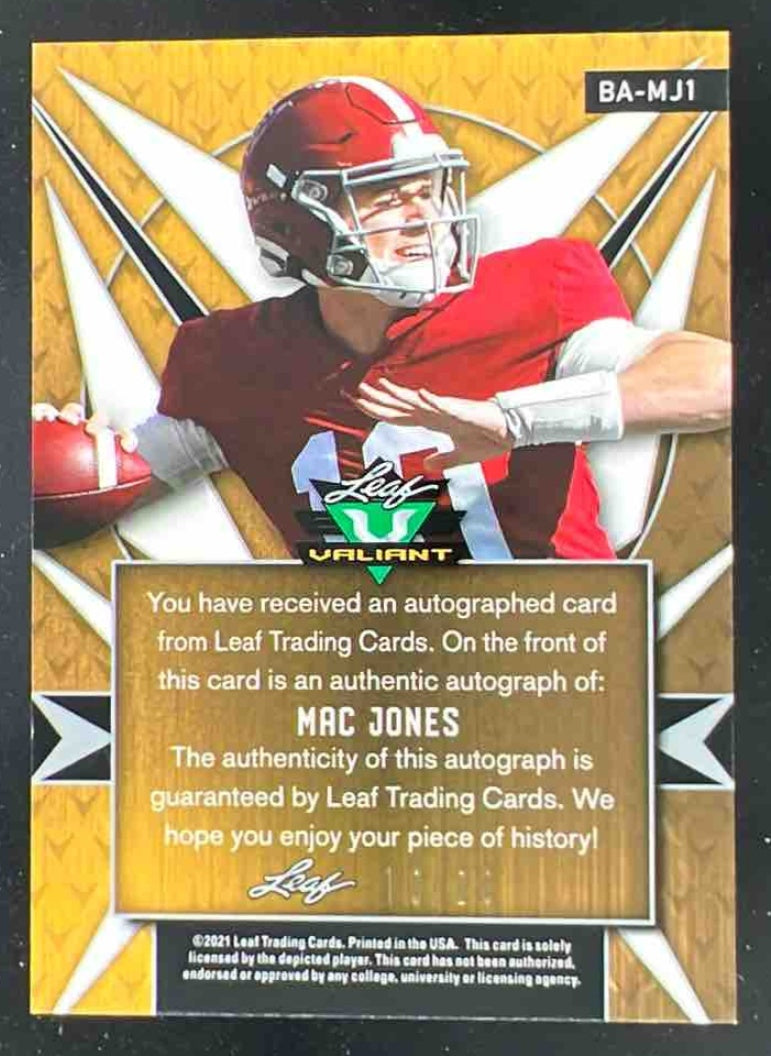 2021 Leaf Valiant Platinum Blue #BAMJ1 Mac Jones Autograph Auto /20