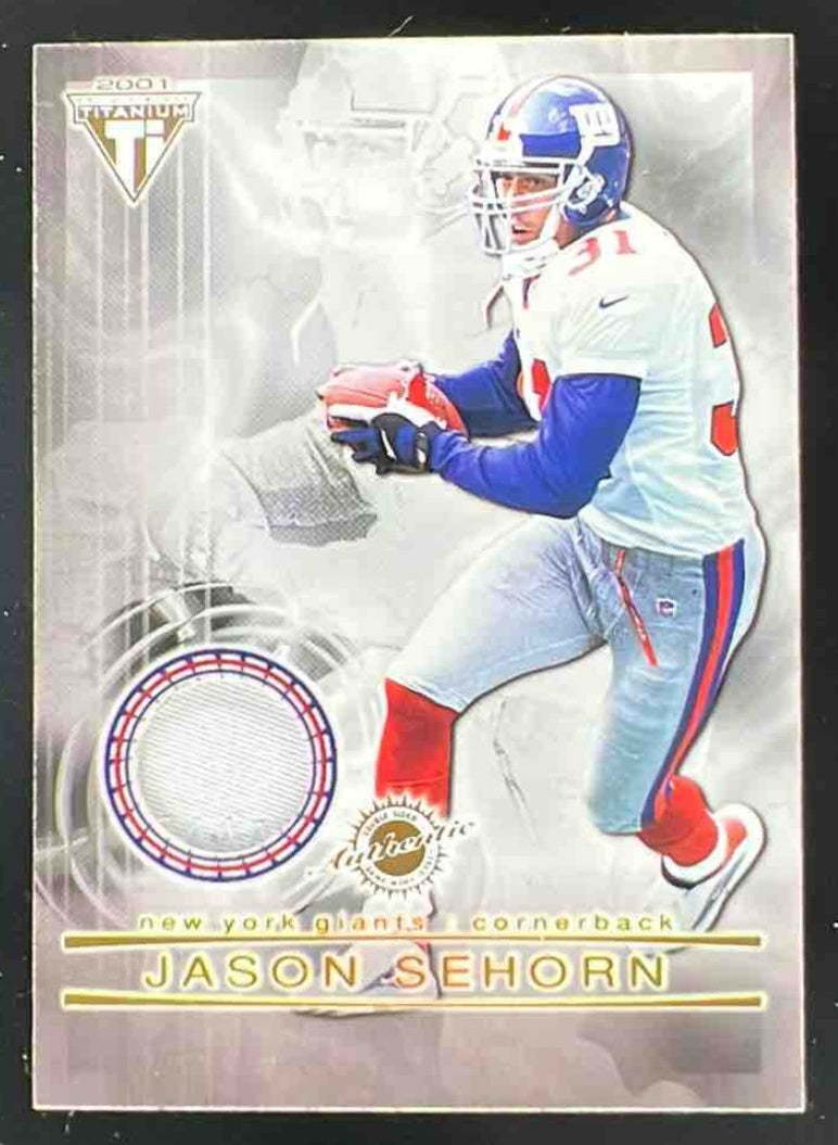 2001 Private Stock Titanium Dual Jersey Patches Jason Sehorn Charles Woodson