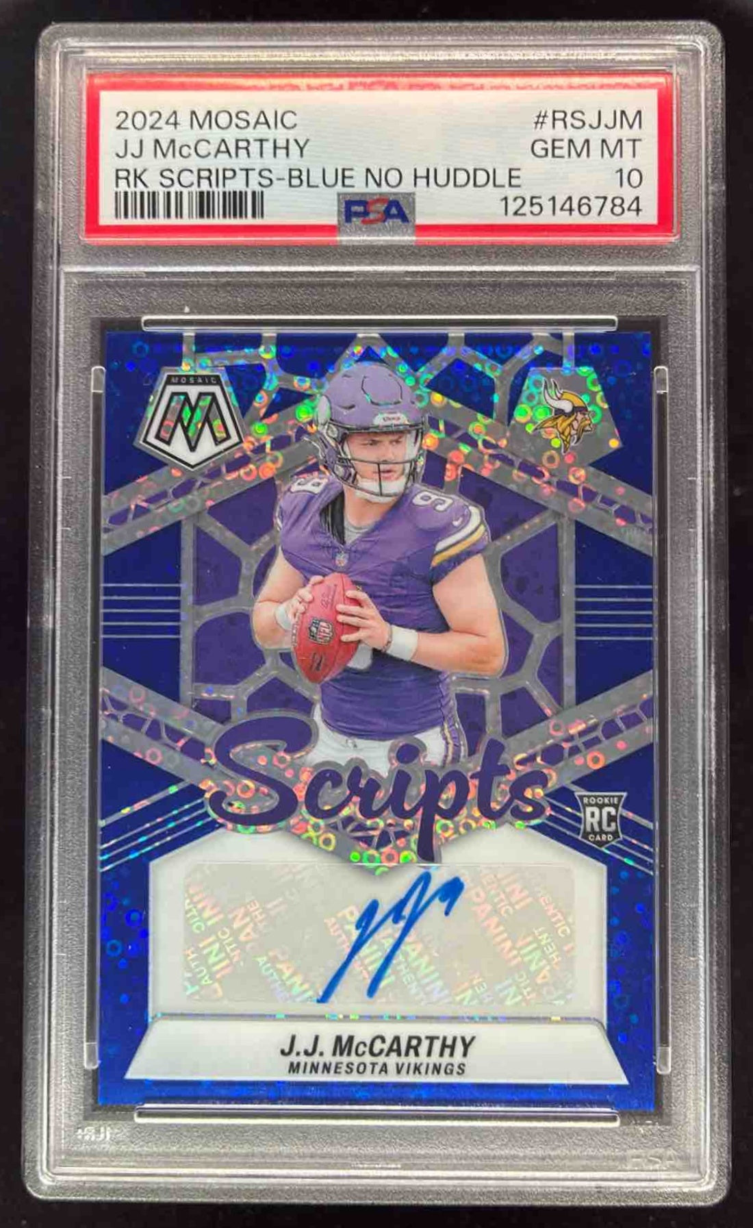 2024 Mosaic Rookie Scripts No Huddle Blue #RS-JJM J.J. McCarthy RC Auto PSA 10