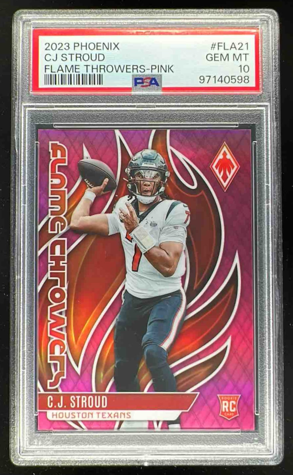 2023 Panini Phoenix Flame Throwers Pink #FLA-21 C.J. Stroud RC /175 PSA 10