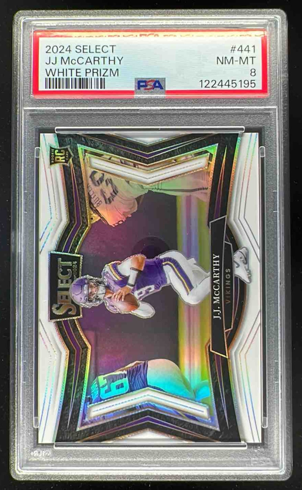 2024 Panini Select Field White Prizm #441 J.J. McCarthy RC /35 PSA 8