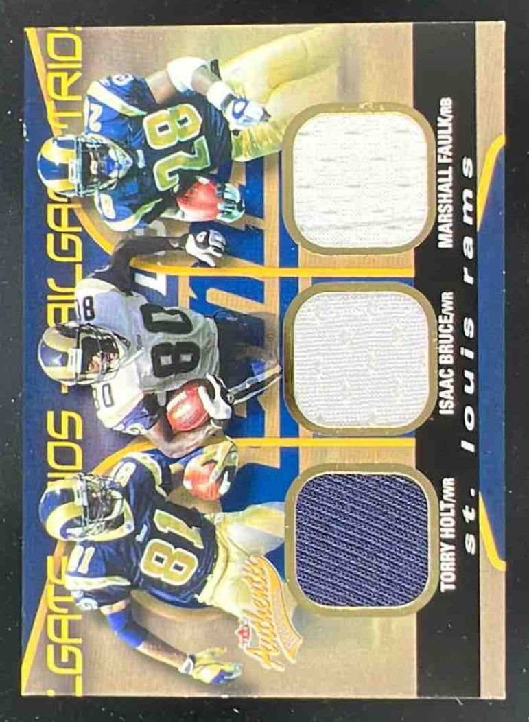 2004 Fleer Authentix Tailgate Trios Torry Holt Isaac Bruce Marshall Faulk /75