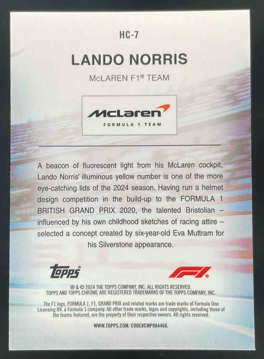2024 Topps Chrome Sapphire Formula 1 Helmet Collection #HC-7 Lando Norris