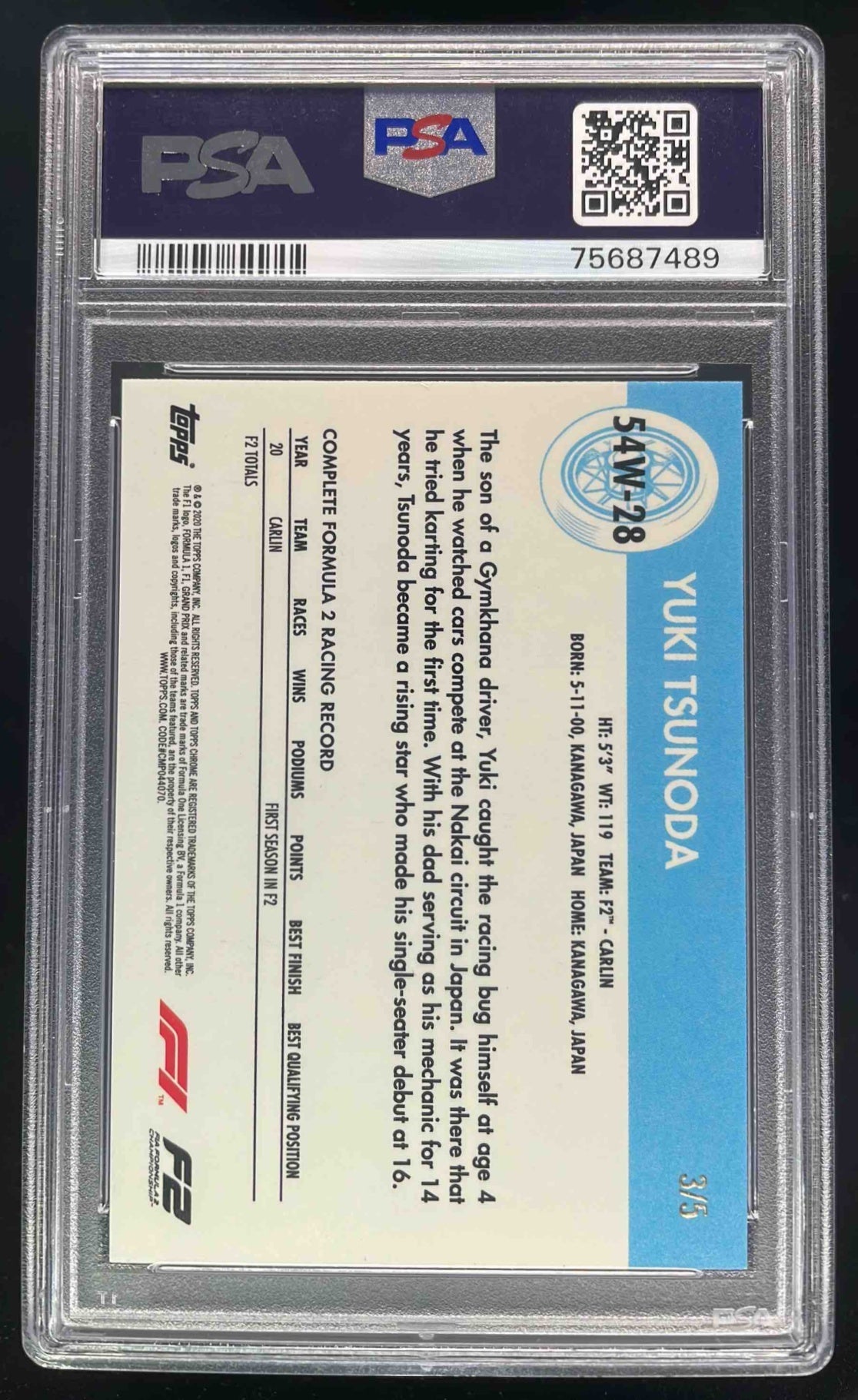 2020 Topps Chrome Formula 1 1954 World on Wheels Red #28 Yuki Tsunoda /5 PSA 8