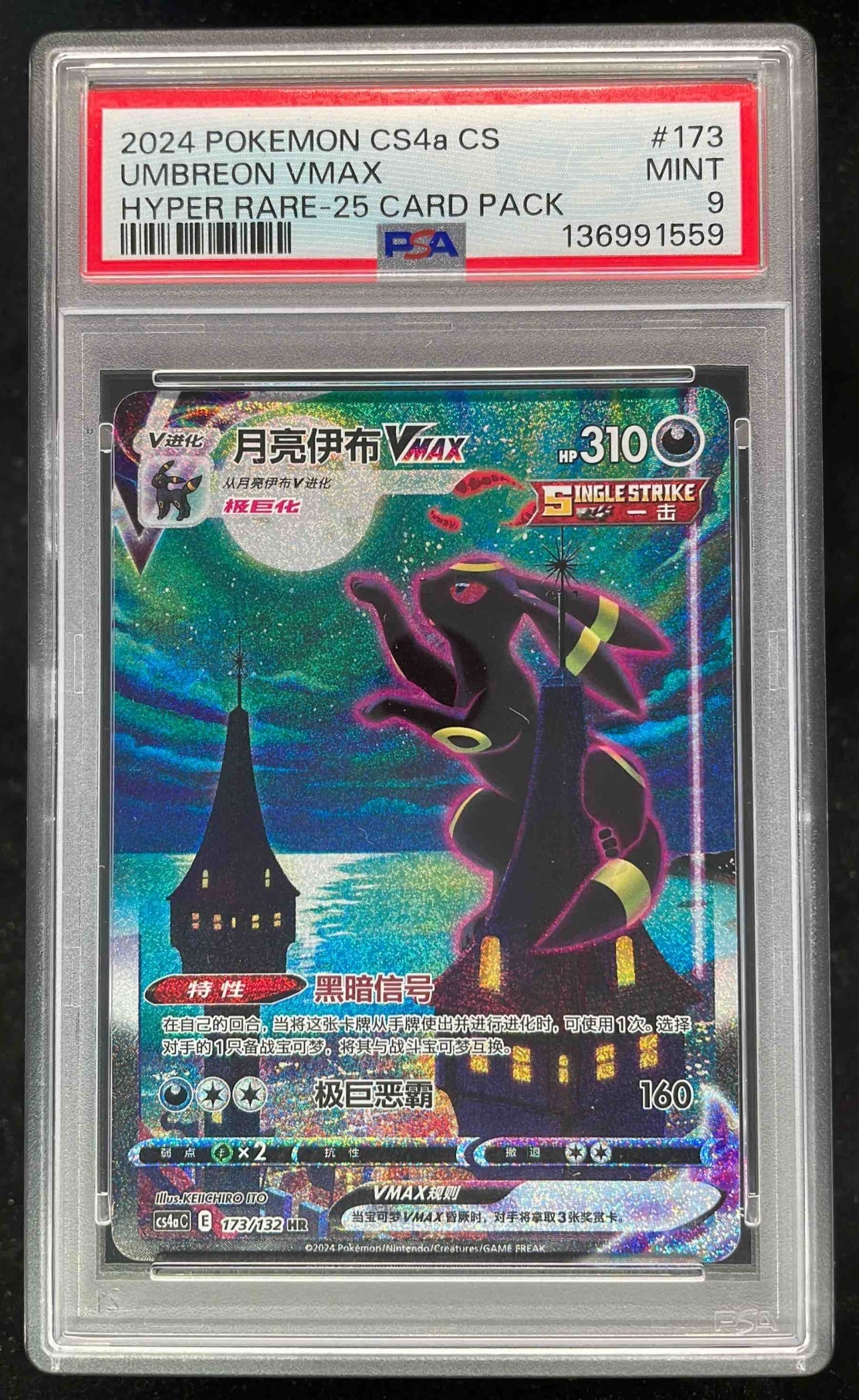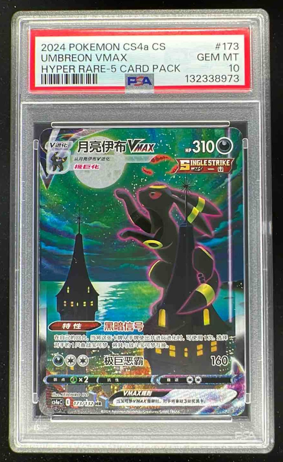 2024 Pokemon CS4a Chinese Hyper Rare #173 Umbreon VMax PSA 9