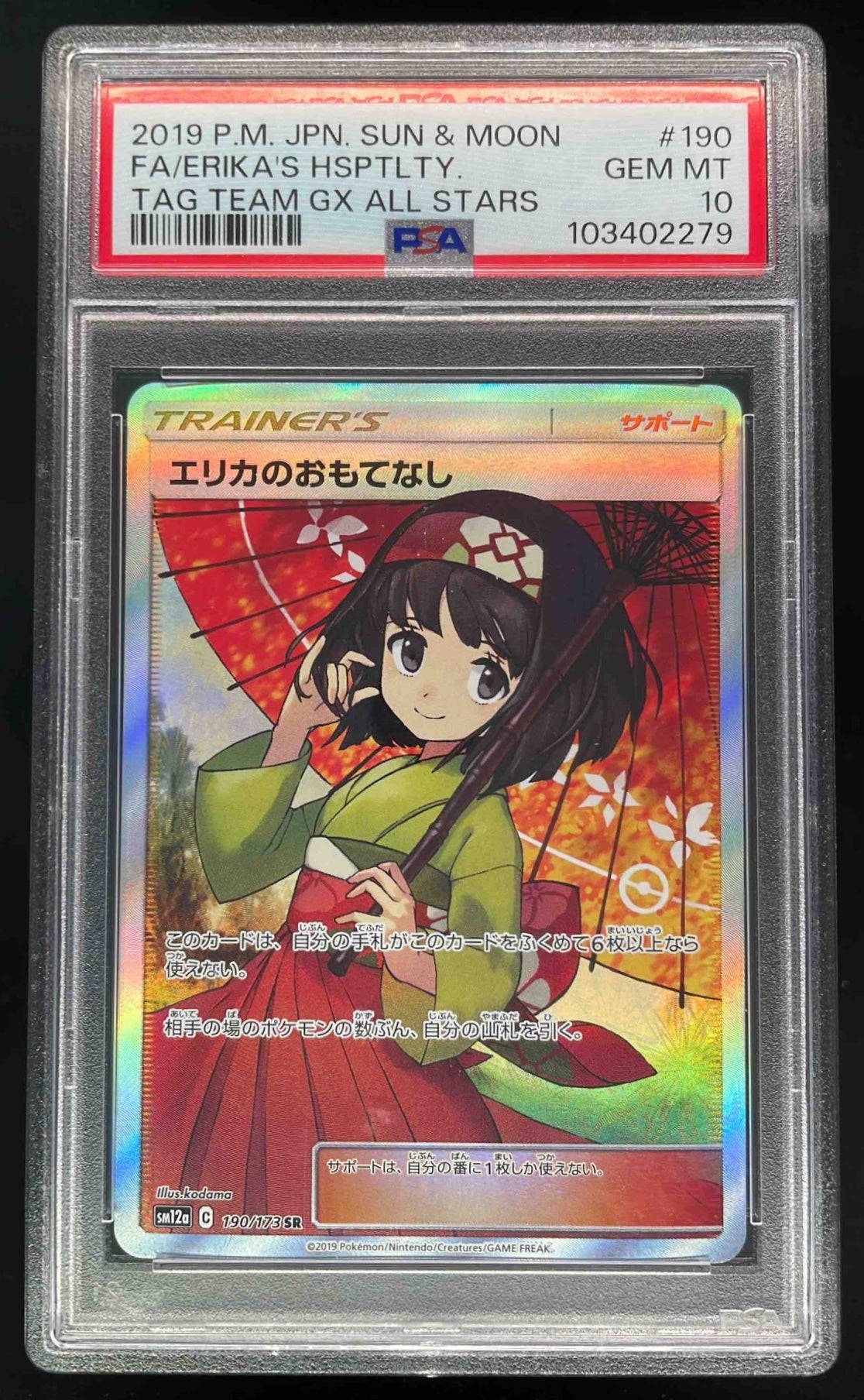 2019 Pokemon Japanese Sun Moon Tag Team GX Erika's Hospitality PSA 10