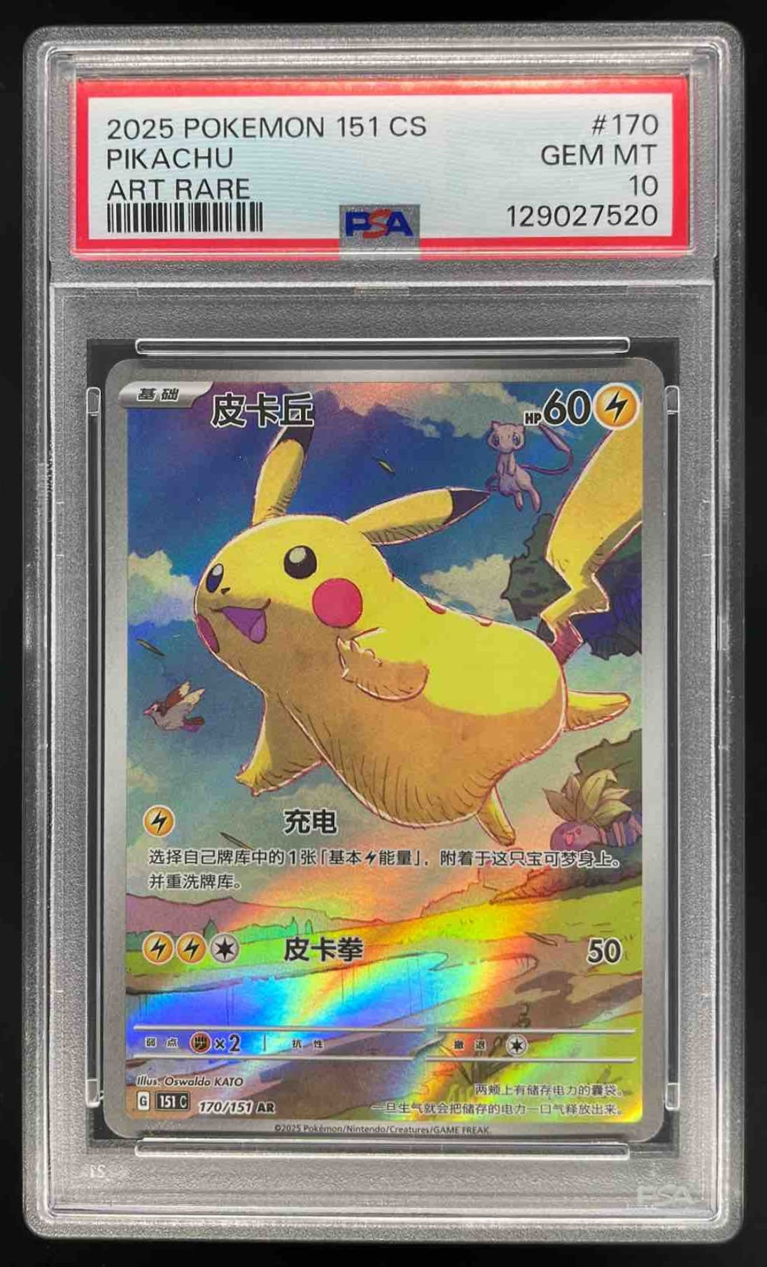 2025 Pokemon 151 Chinese #170 Pikachu Art Rare PSA 10