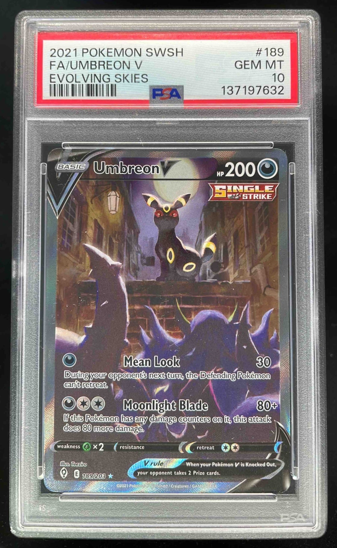 2021 Pokemon Sword & Shield Evolving Skies #189/203 Umbreon V PSA 10