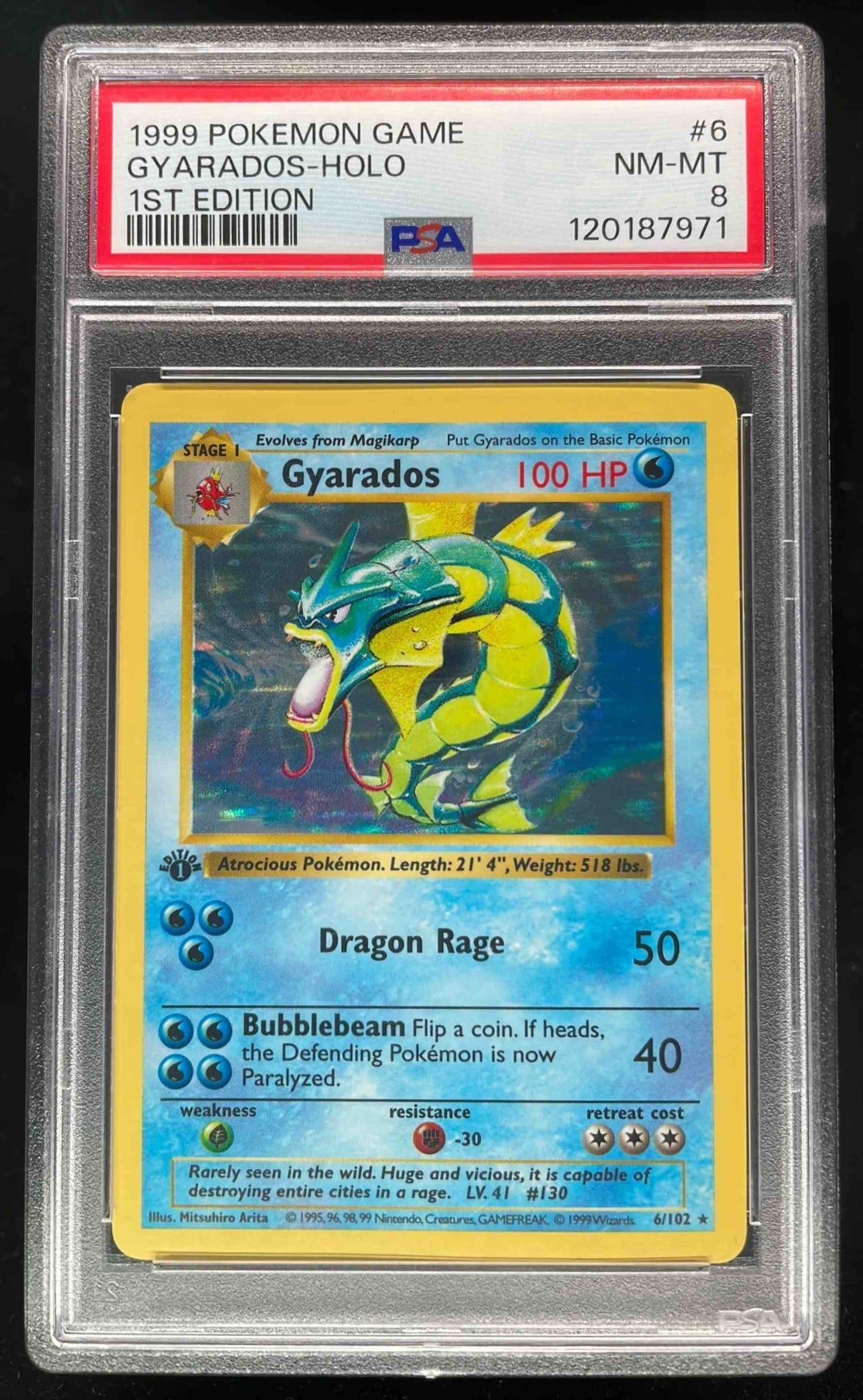 1999 Pokemon 1st Edition #6/102 Gyarados Holo PSA 8