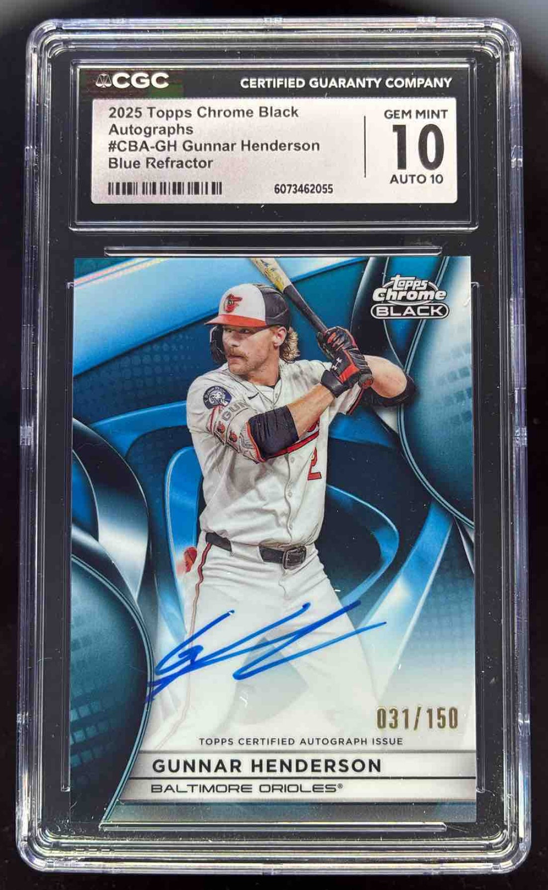 2025 Topps Chrome Black Blue Refractors #CBAGH Gunnar Henderson Auto /150 CGC 10