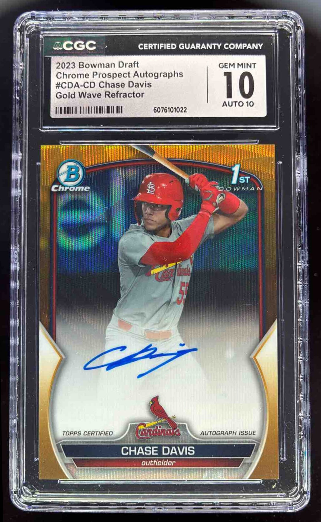 2023 Bowman Chrome Gold Wave Refractor #CDA-CD Chase Davis RC Auto /50 CGC 10