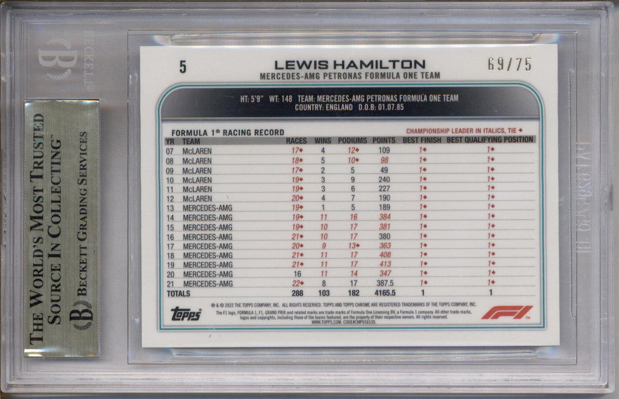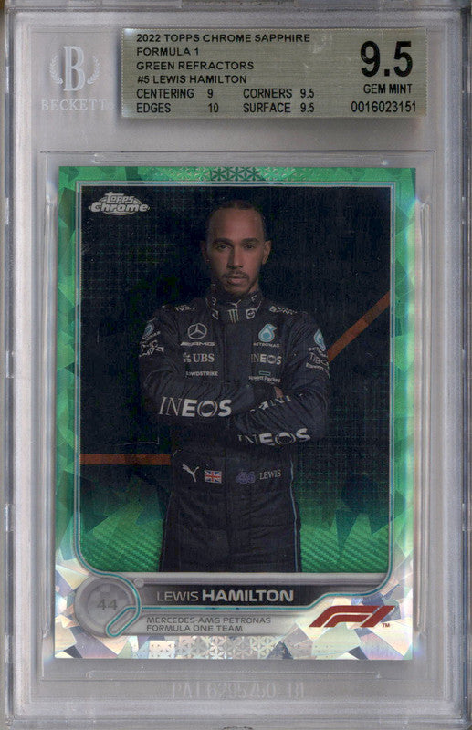 2022 Topps Chrome Sapphire Formula 1 Green Refractors Lewis Hamilton /75 BGS 9.5