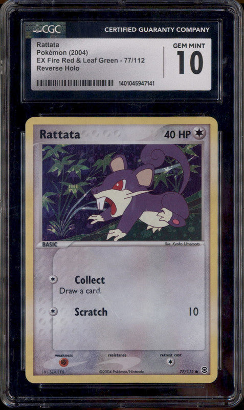 2004 Pokemon EX Fire Red & Leaf Green Reverse Holo #77 Rattata CGC 10