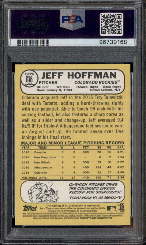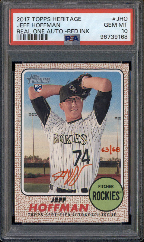 2017 Topps Heritage Real One Autographs Red Ink Jeff Hoffman RC Auto /68 PSA 10