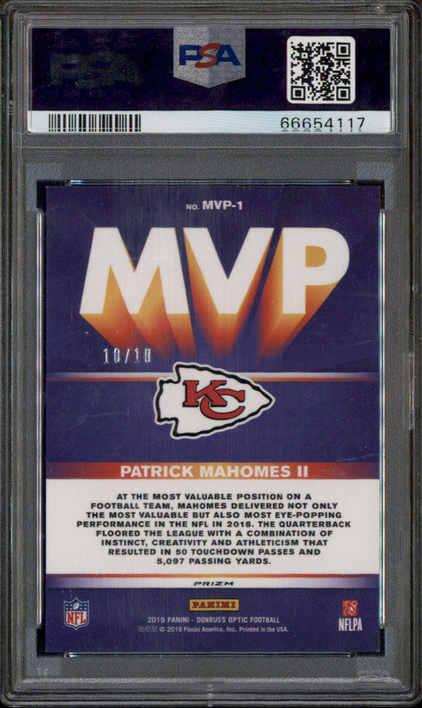 2019 Panini Donruss Optic Mvp Gold #1 Patrick Mahomes II /10 PSA 8