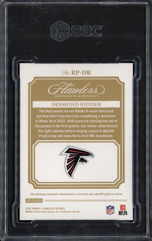 2022 Flawless Rookie Patch Sapphire #RPDR Desmond Ridder RC /10 SGC 9
