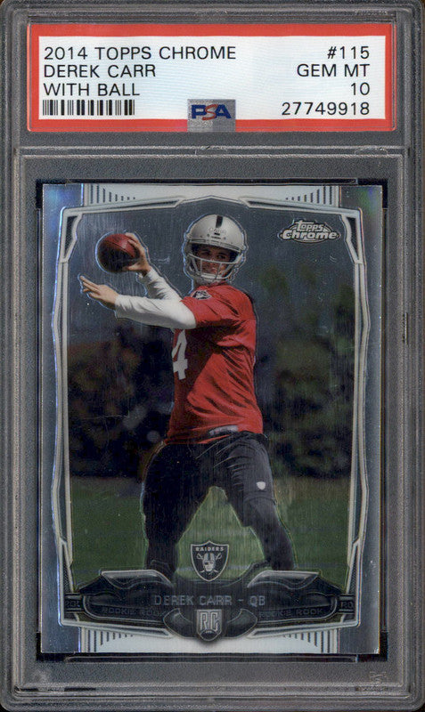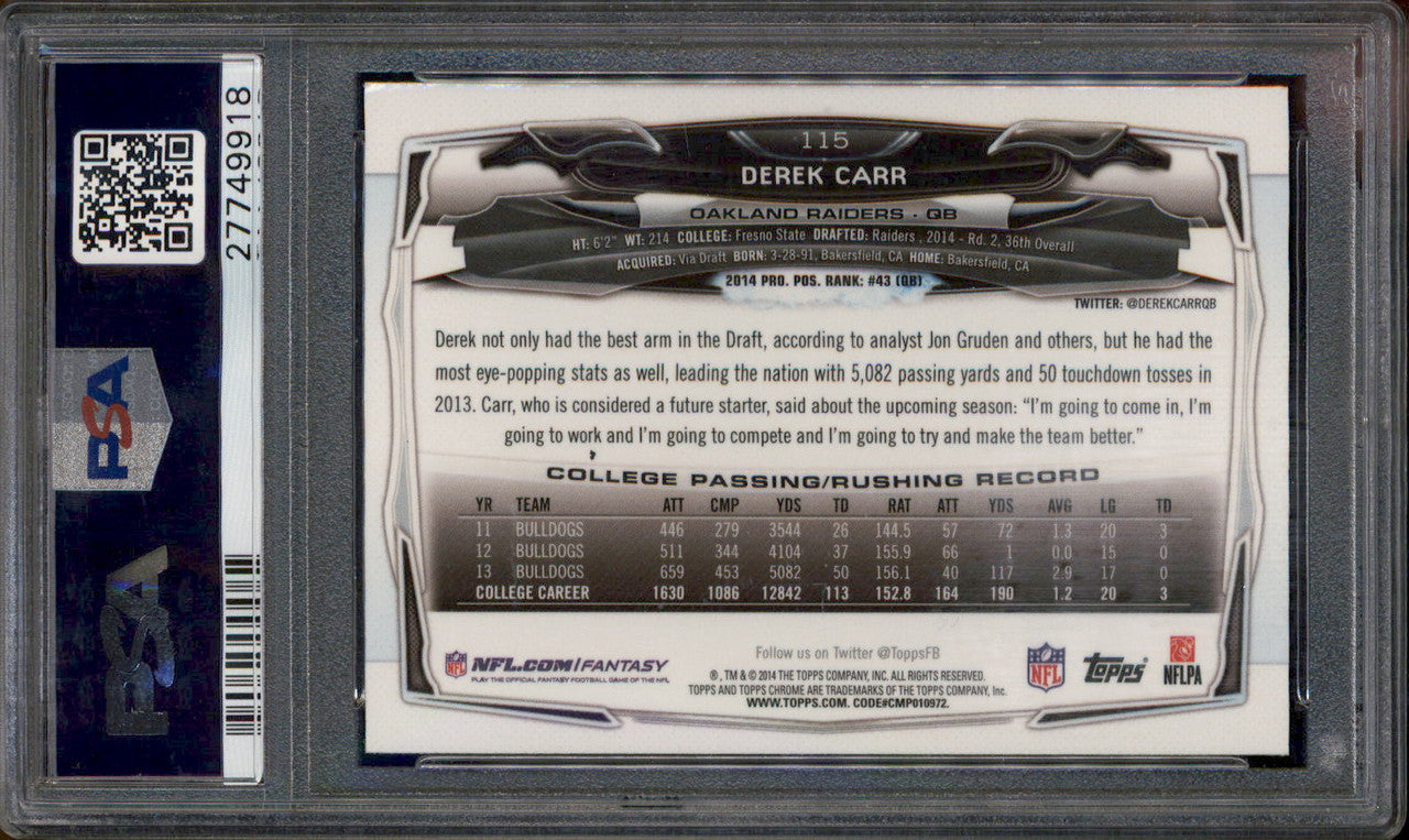 2014 Topps Chrome #115 Derek Carr With Ball RC Rookie PSA 10