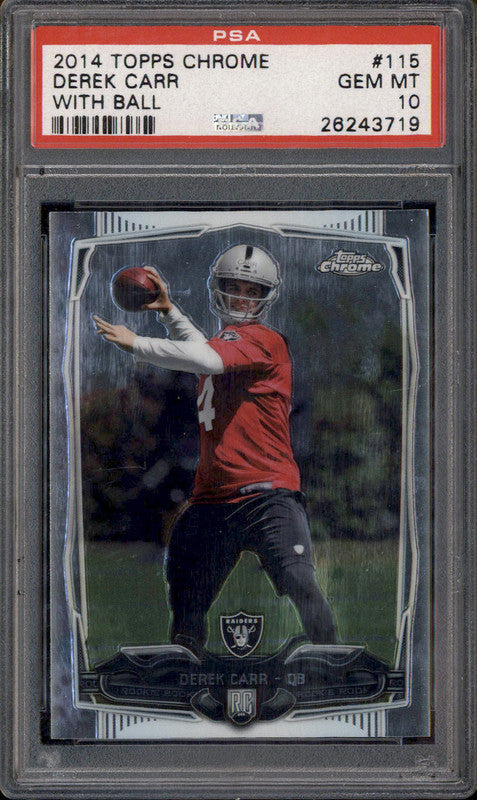 2014 Topps Chrome #115 Derek Carr With Ball RC Rookie PSA 10