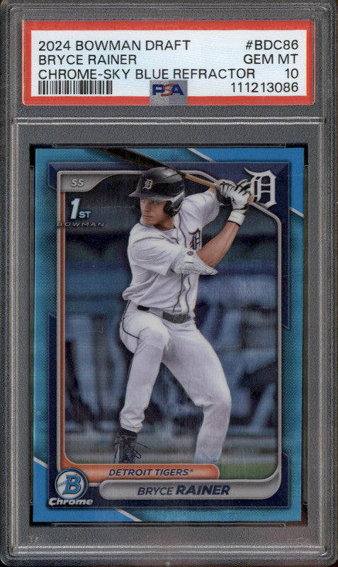 2024 Bowman Chrome Draft Sky Blue Refractor Bryce Rainer RC PSA 10