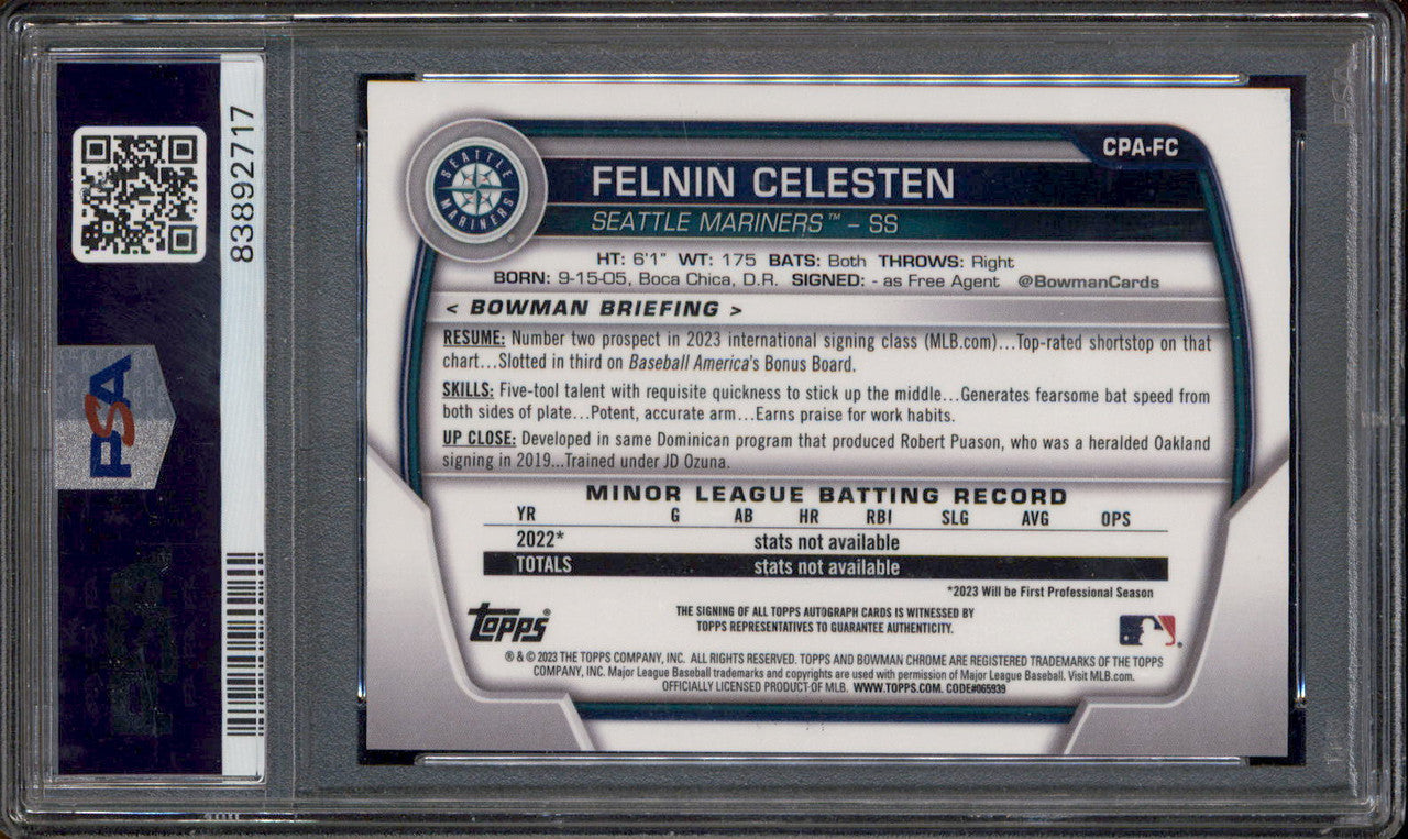 2023 Bowman Chrome Prospect Autographs #CPA-FC Felnin Celesten RC Auto PSA 10