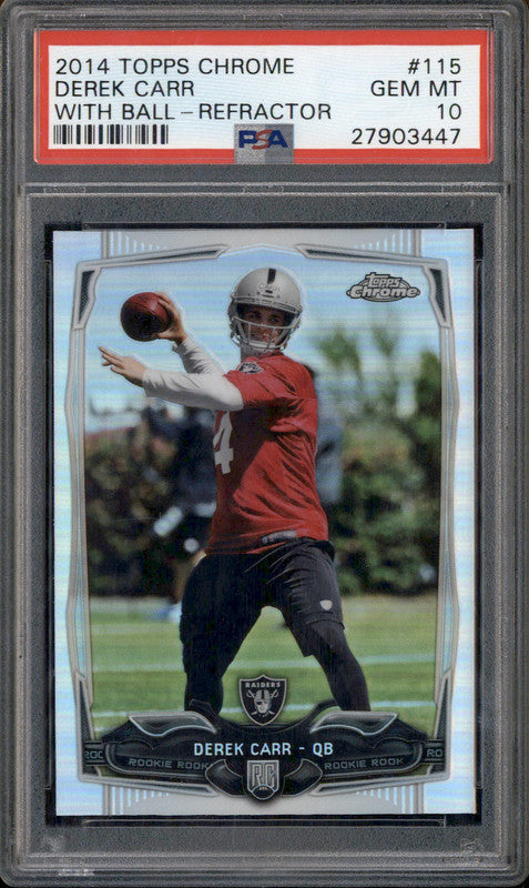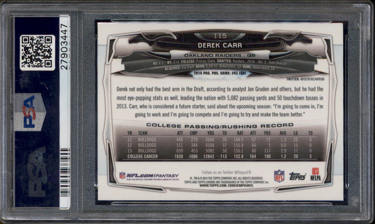 2014 Topps Chrome Refractor #115 Derek Carr With Ball RC Rookie PSA 10
