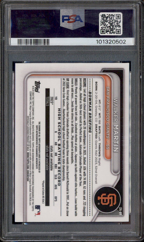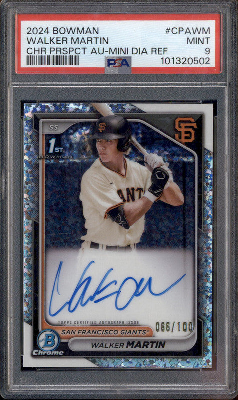 2024 Bowman Chrome Prospect Auto Mini Diamond Walker Martin RC /100 PSA 9