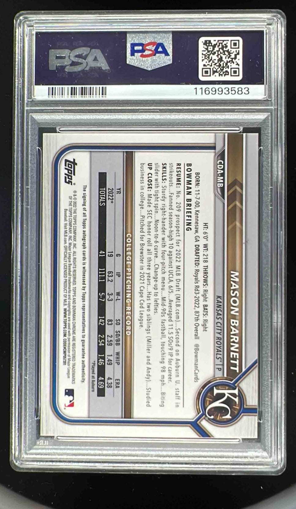 2022 Bowman Draft Chrome Black & White RayWave Mason Barnett RC Auto PSA 10