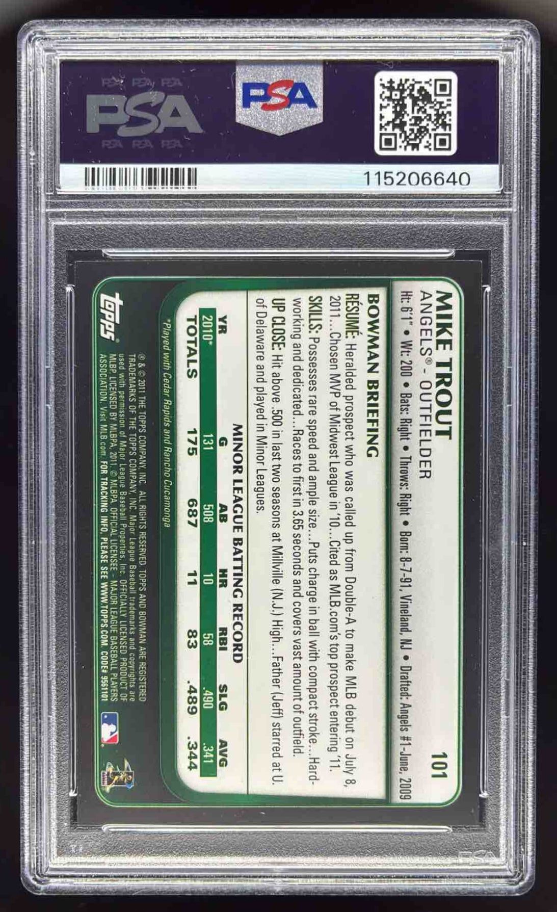 2011 Bowman Draft Picks & Prospects #101 Mike Trout RC PSA 8