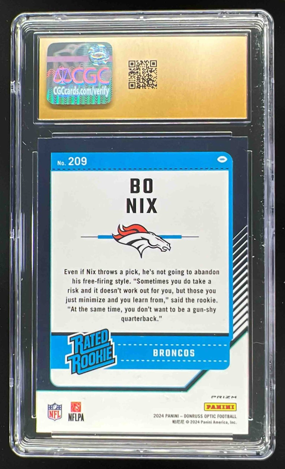 2024 Panini Donruss Optic Green Velocity #209 Bo Nix Rated Rookie CGC 10