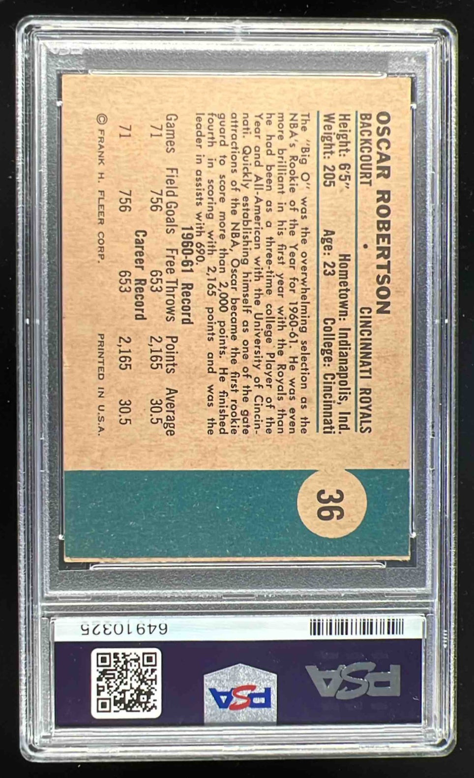 1961-62 Fleer #36 Oscar Robertson RC PSA 4