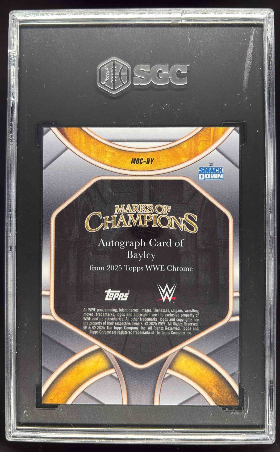 2025 Topps Chrome WWE Marks of Champions Blue Refractors Bayley Auto /150 SGC 10