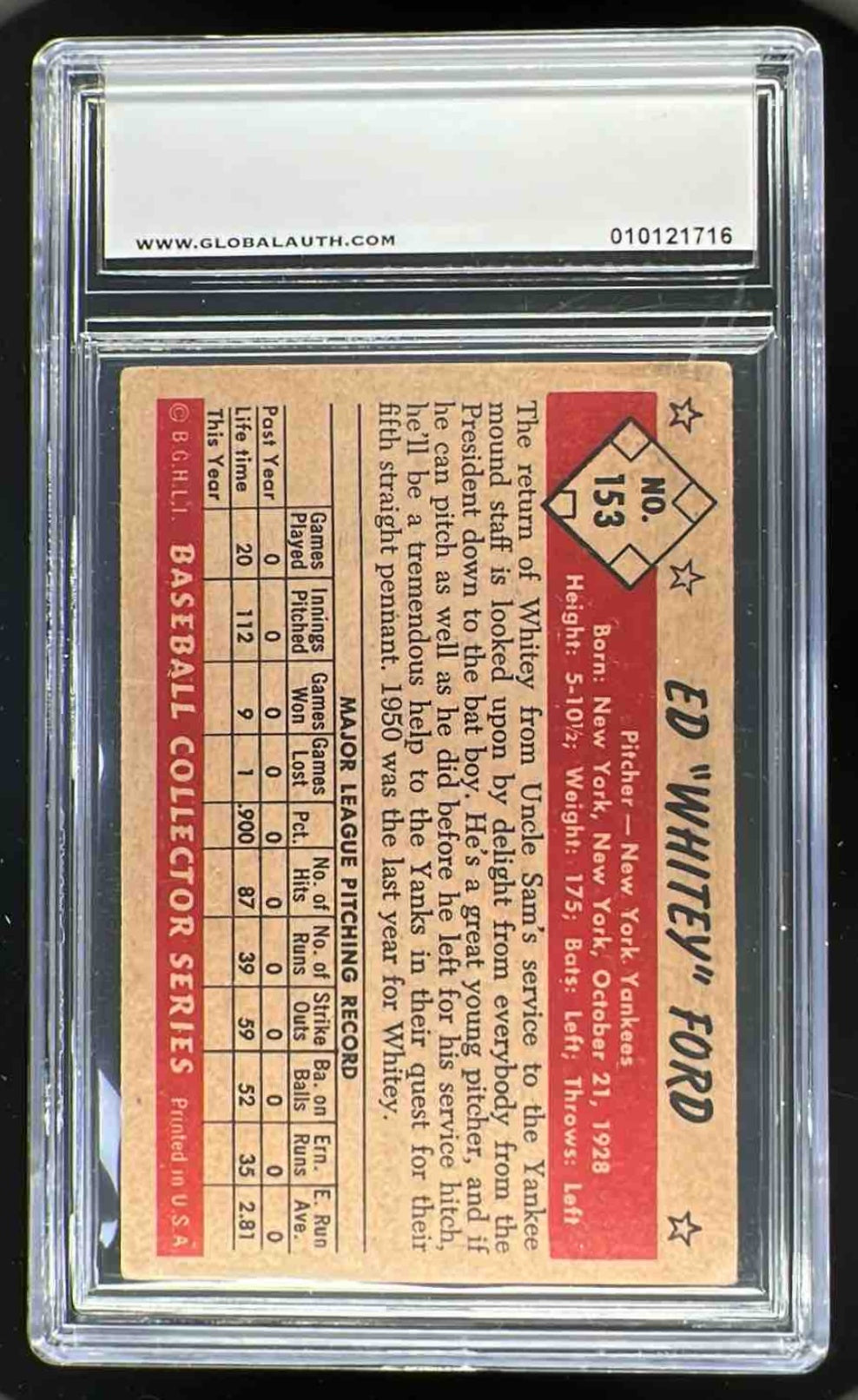 1953 Bowman Color #153 Whitey Ford GAI 3