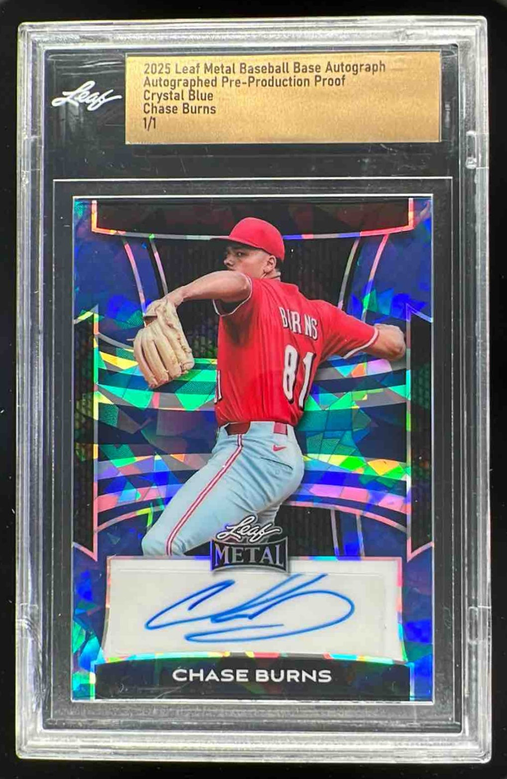 2025 Leaf Metal Autograph Crystal Blue Chase Burns Auto 1/1