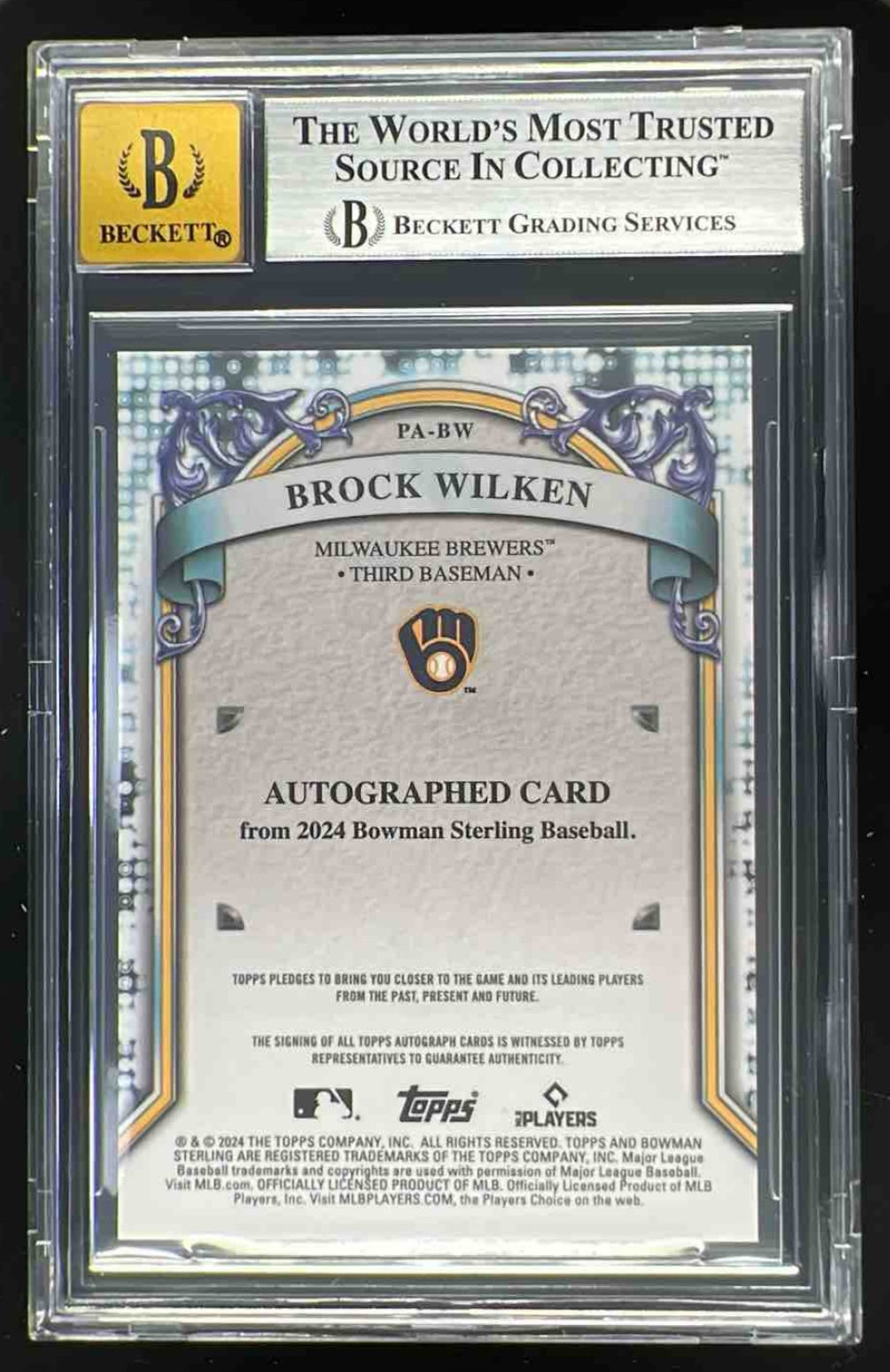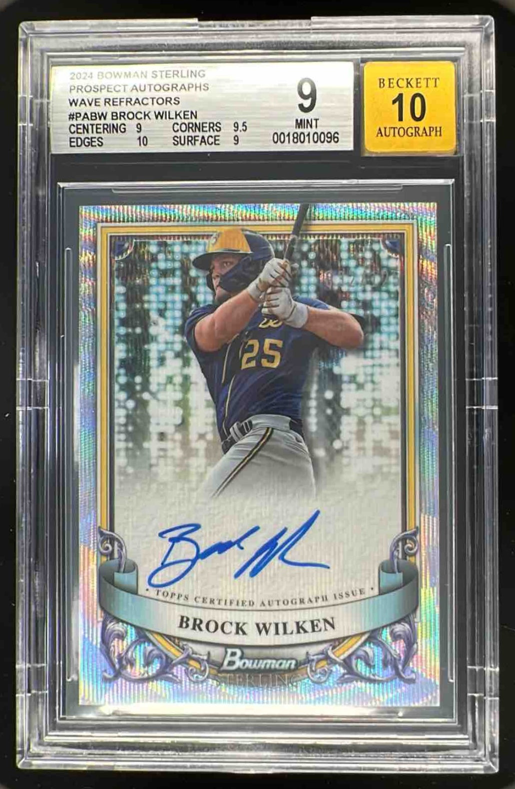 2024 Bowman Sterling Prospect Wave Refractor #PA-BW Brock Wilken Auto /125 BGS 9