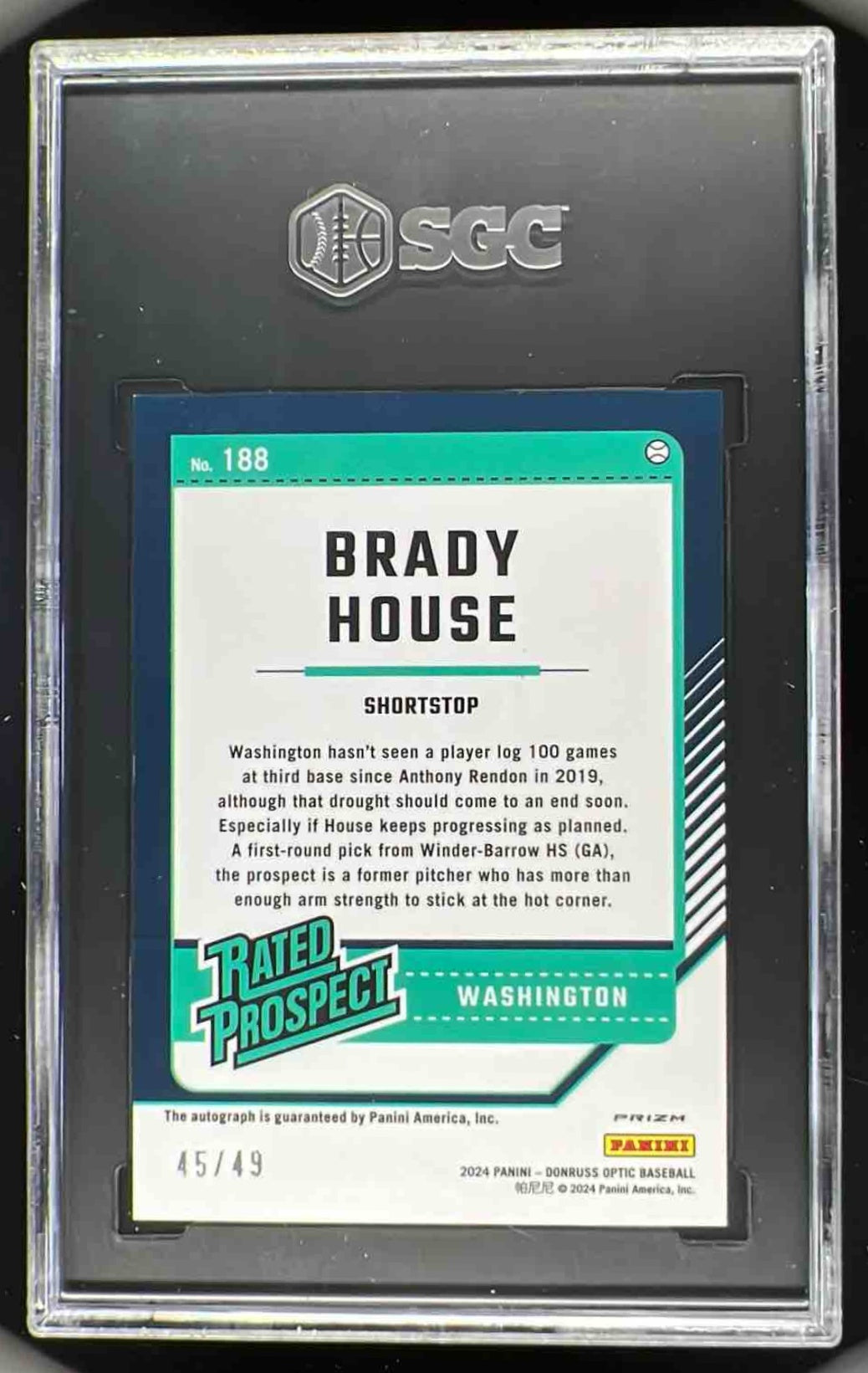 2024 Donruss Prospects Optic Purple Prizm #188 Brady House Auto /49 SGC 8.5