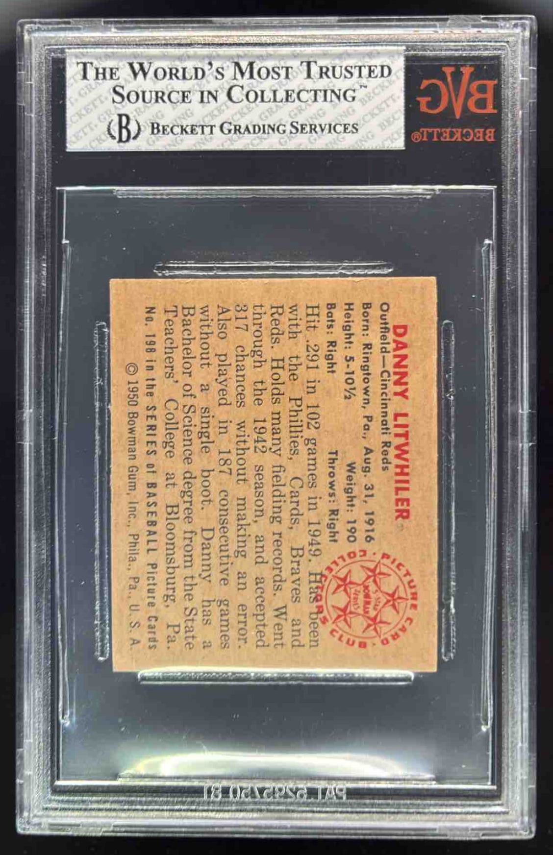 1950 Bowman #198a Danny Litwhiler BGS 7.5