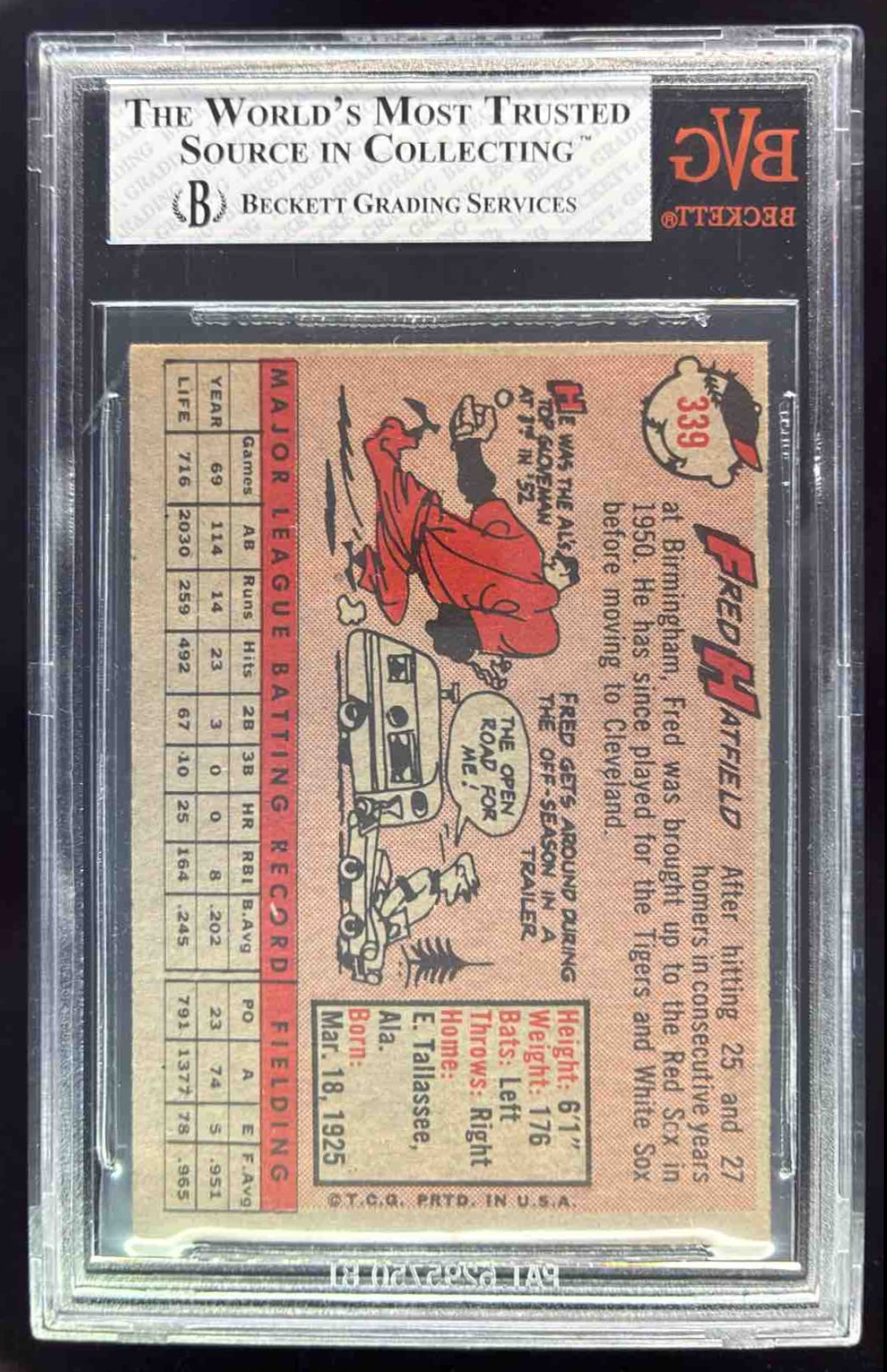 1958 Topps #339 Fred Hatfield BGS 7.5