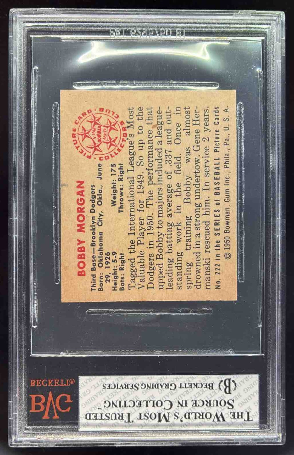 1950 Bowman #222a Bobby Morgan RC BGS 8