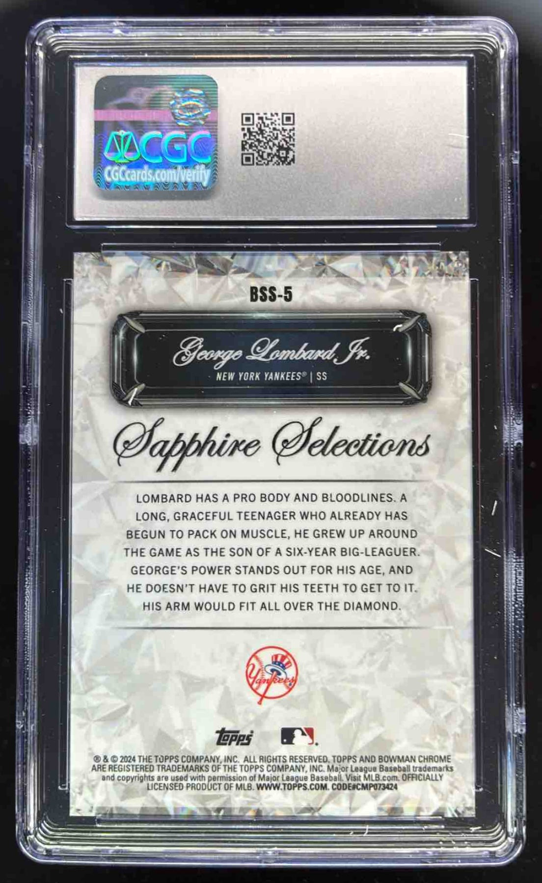 2024 Bowman Sapphire Selections Gold Refractors George Lombard Jr. /50 CGC 10