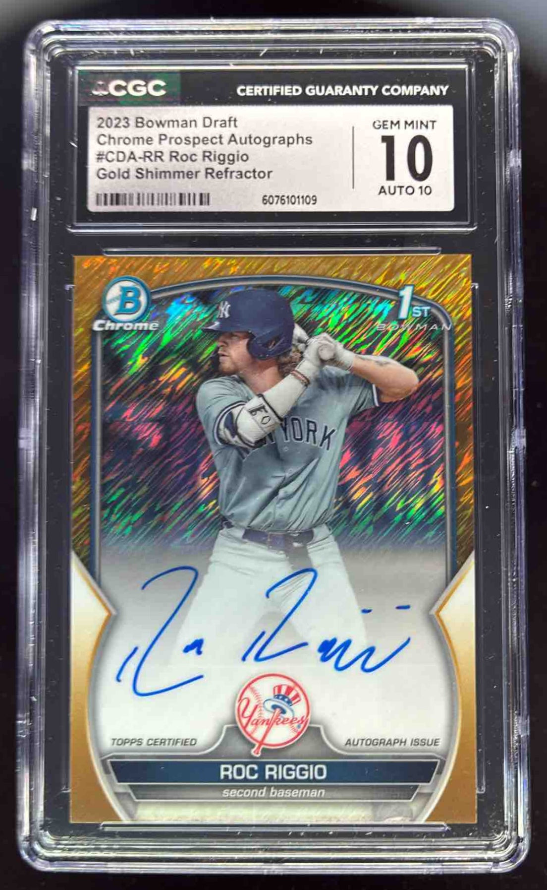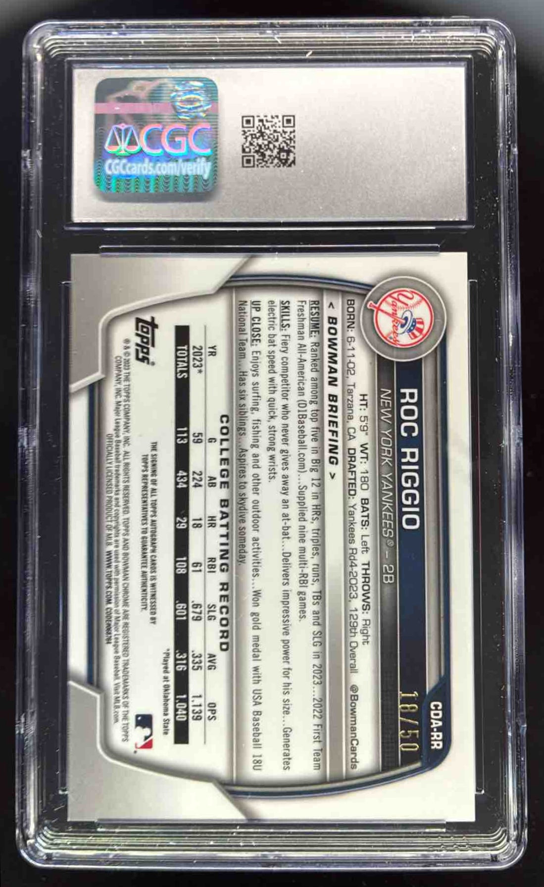 2023 Bowman Draft Chrome Gold Shimmer #CDA-RR Roc Riggio RC Auto /50 CGC 10