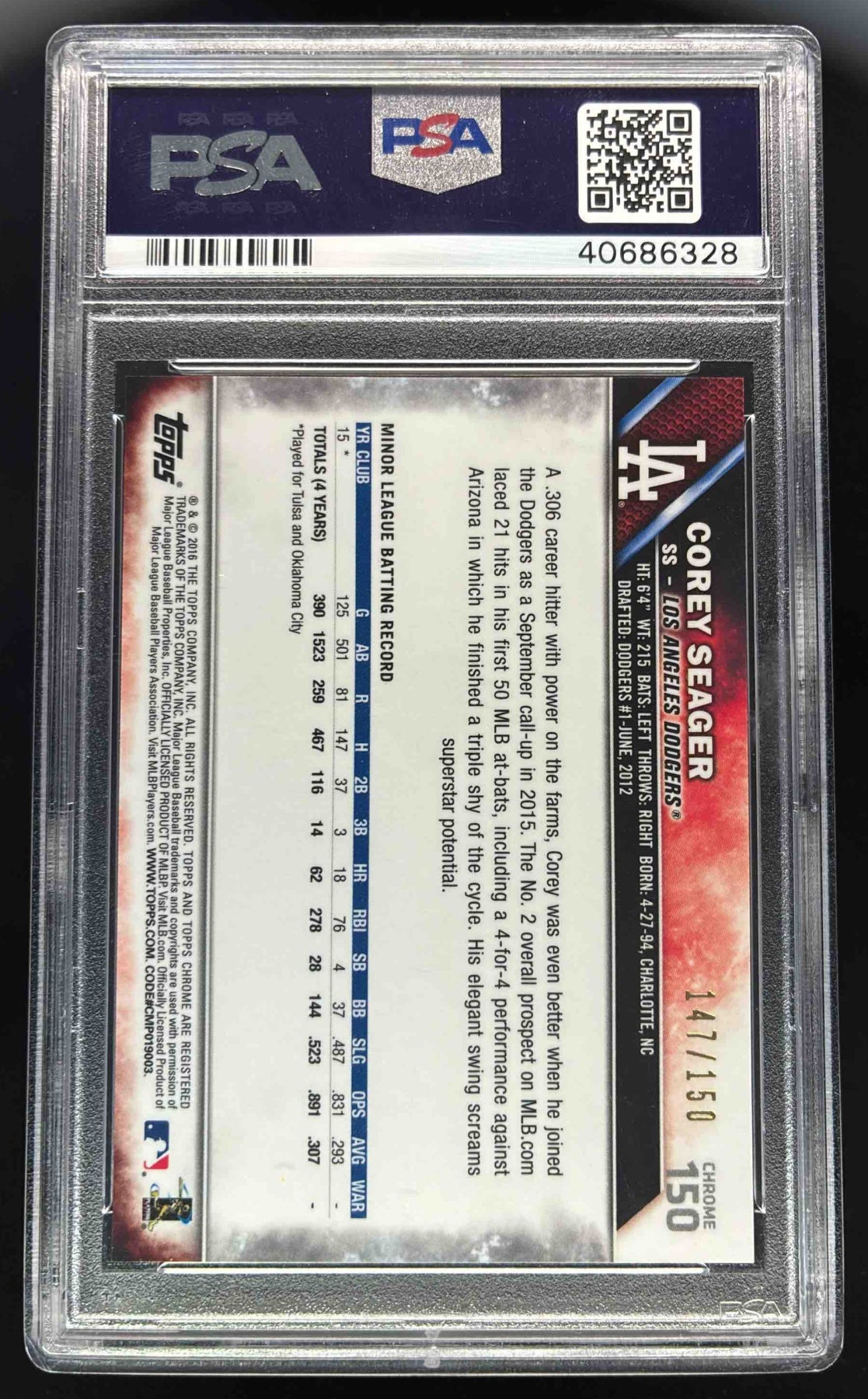 2016 Topps Chrome Blue Refractor #150 Corey Seager RC /150 PSA 9